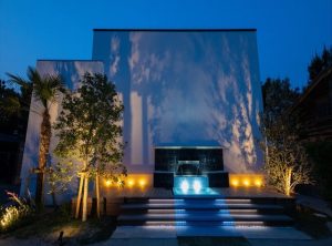 和の趣ある本館とは対照的な、一棟貸し「Castle Side Villa 波静」。